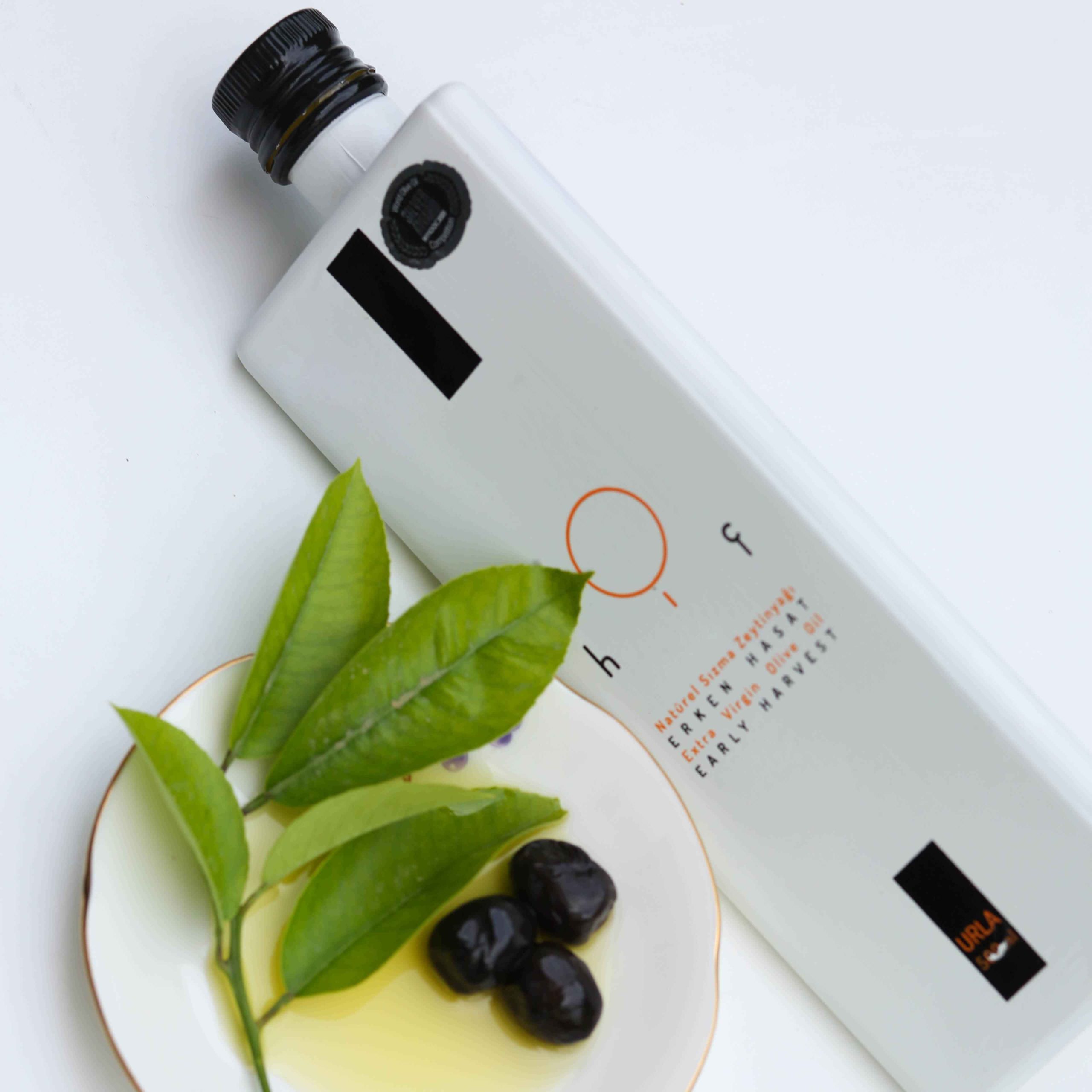 Urla’nın kendisine has yoğun enginar ve çağla badem aromasına sahip dengeli Erken Hasat Natürel Sızma Zeytinyağı. – Beyaz – 500 ml