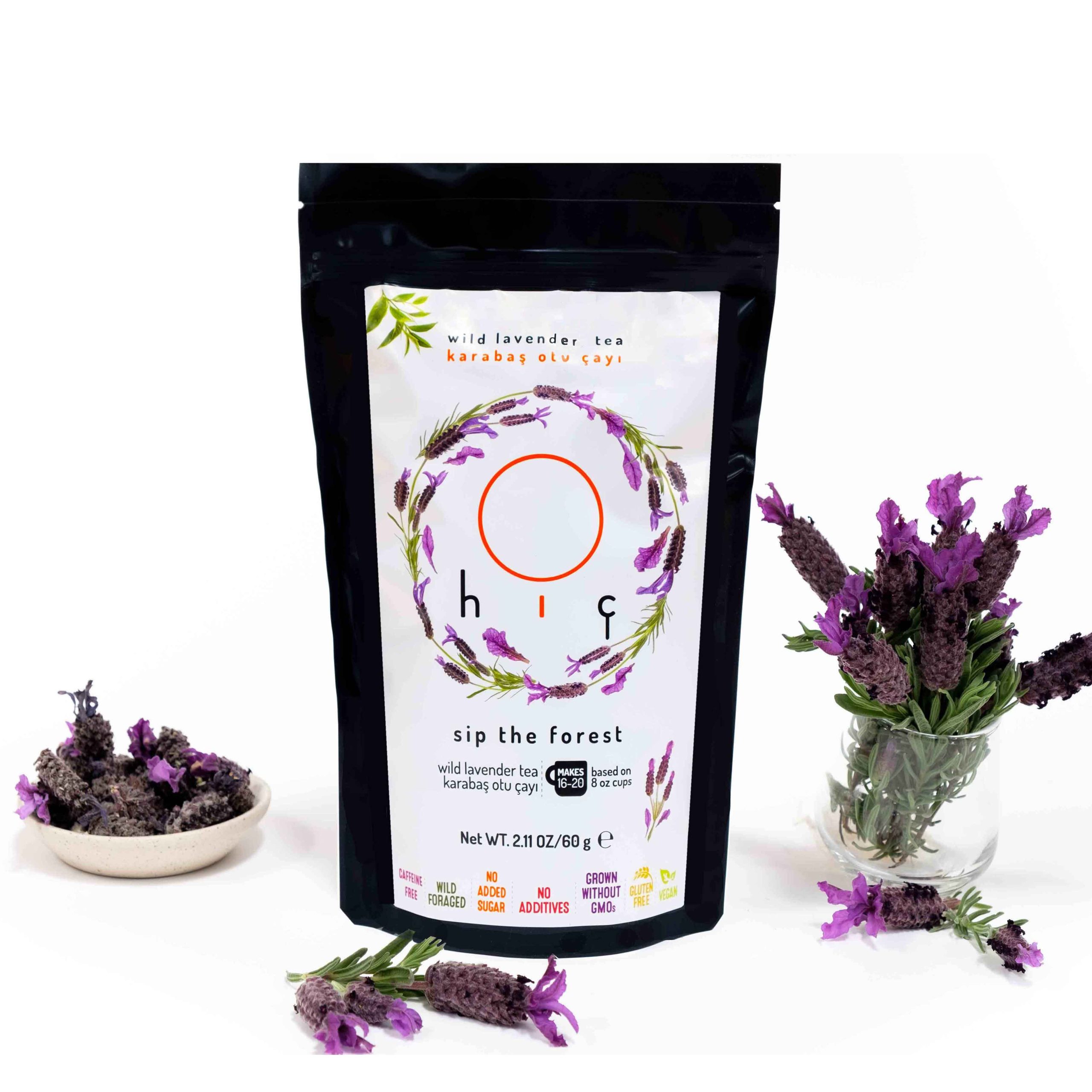 Mayıs ve Haziran aylarında, kendine has iri mor yapraklı çiçeklerin ve güzel kokusu ile Organik Hiç Zeytin Ormanı’nın bakir doğasında kendiliğinden her bahar çiçek açan bölgeye has yabani lavanta cinsi olan Karabaş Otu yani Lavandula Stoechas çiçeklerini elle topladık.